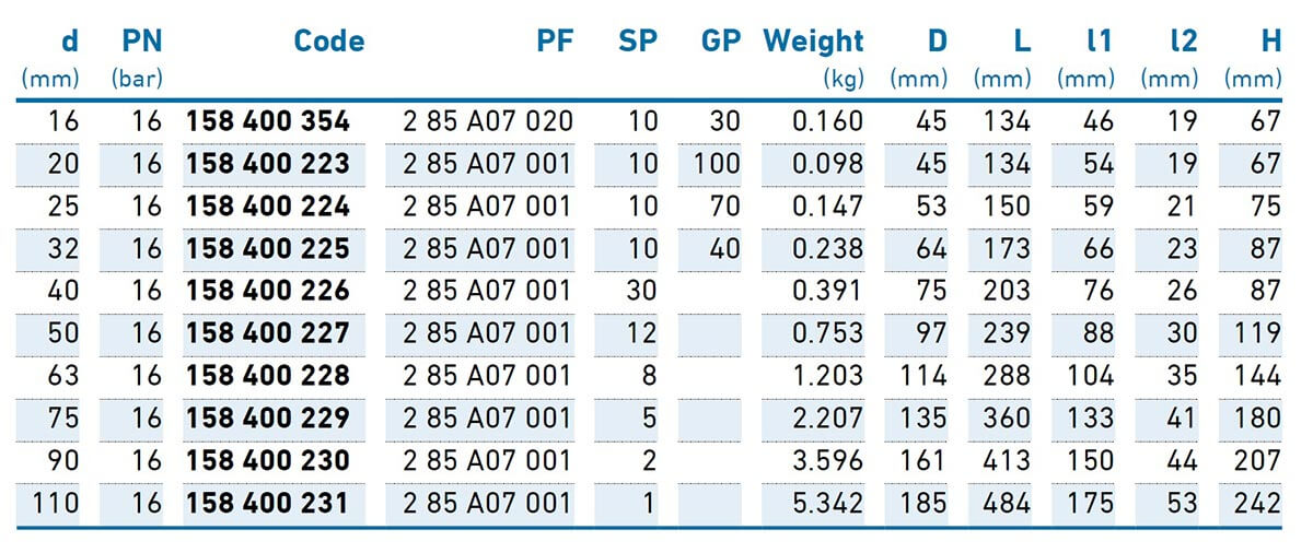 | Dimenzija | d110, d20, d25, d32, d40, d50, d63, d75, d90 |